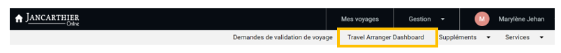 * A partir de votre page d’accueil, cliquer sur le lien « Travel Arranger Dashboard »