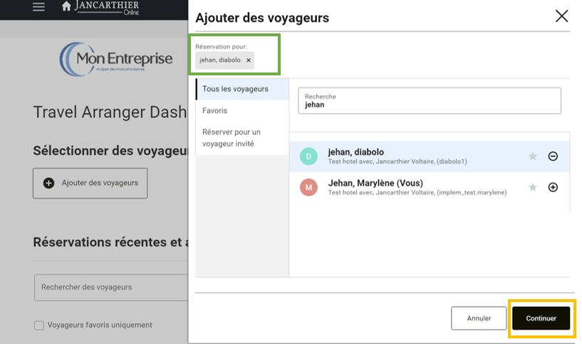 * Vous pouvez maintenant faire une réservation pour le ou les voyageurs sélectionnés
