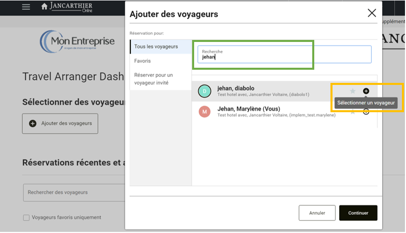 * Ensuite sur « Ajouter des voyageurs » pour sélectionner le ou les voyageurs