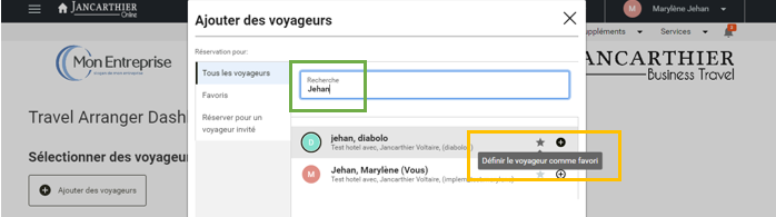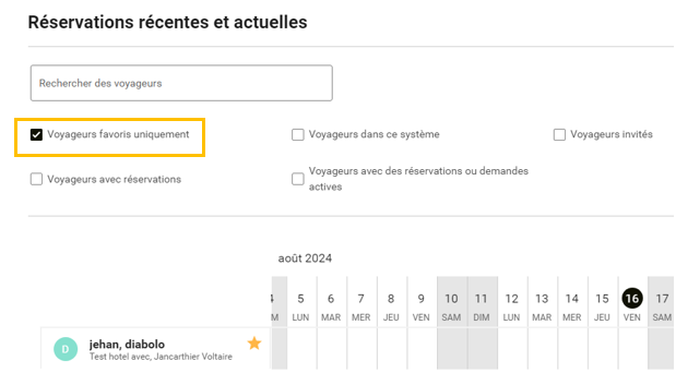 * Maintenant à partir de votre "Travel Arranger Dashboard" en appliquant le filtre "Voyageurs favoris uniquement" vous affichez uniquement ces voyageurs.