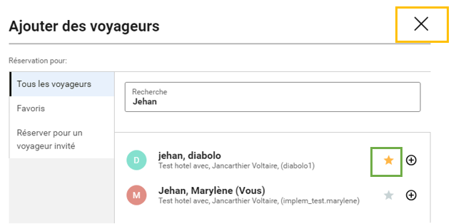 * Le voyageur est maintenant déclaré en favori "" (voir ci-dessous).