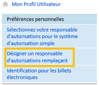 * Puis sur ce lien dans le menu de gauche "Désigner un responsable d'autorisations remplaçant".